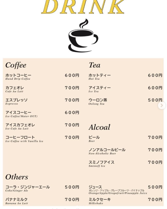 (メニュー内容は新オーナー様があげてくださってるInstagram画像より引用しています。)