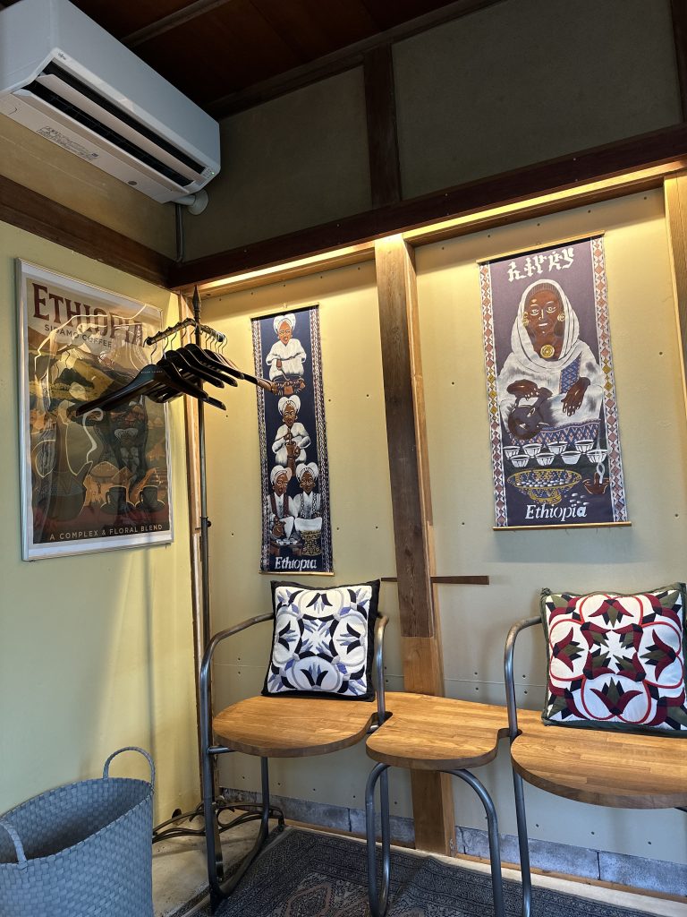 珈琲は大使館コーディネートとして活動をされている住職の奥様が各国の大使館から推薦されたコーヒー豆をハンドドリップで提供してくれる。