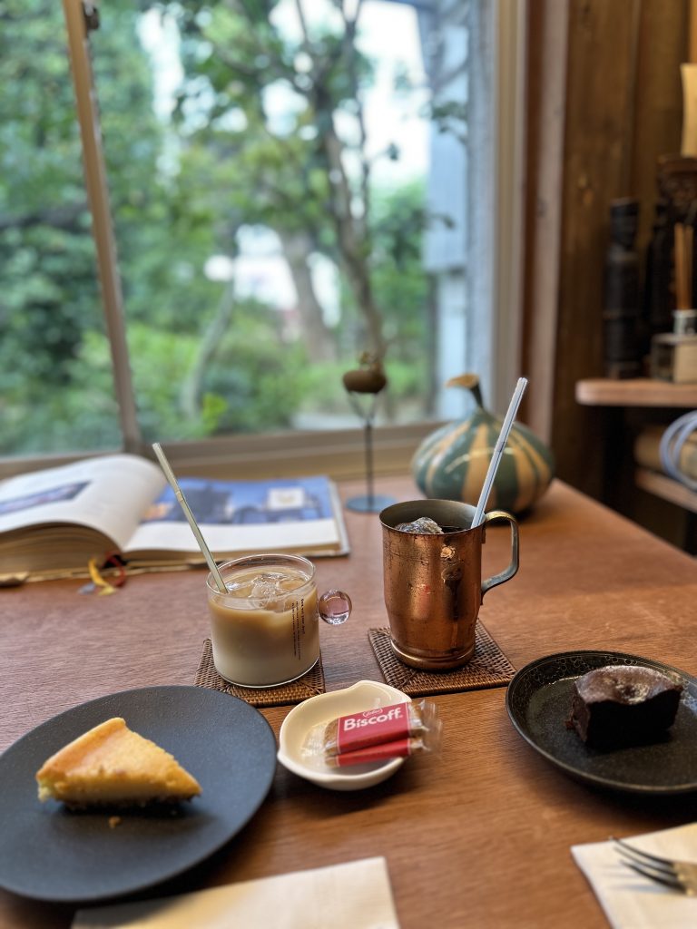 窓からの景色は収玄寺の庭園、店内はジャズが流れ、異国情緒漂う空間となっている。