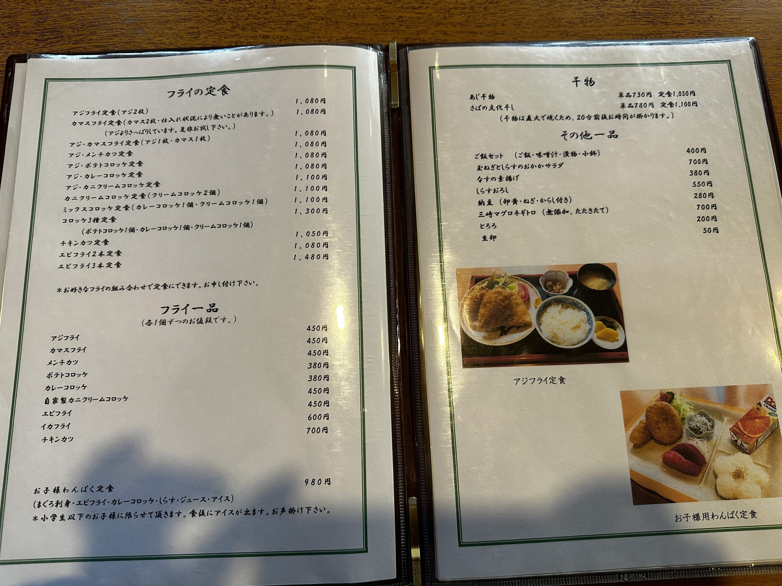 アジフライとカマスの定食はこの日カマスの仕入れがなかったため、ホウボウフライに変更。