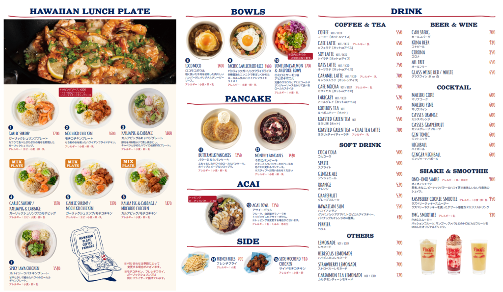 人気メニューはガーリックシュリンププレート・ロコモコボウル・アサイーボウル・バターミルクパンケーキみぃ♪
