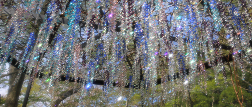 そんな藤の花がきれいな季節に箱根ガラスの森美術館で、庭園から見える自然の藤の花と合わせて、クリスタル・ガラスの藤の花を楽しむことができます♫