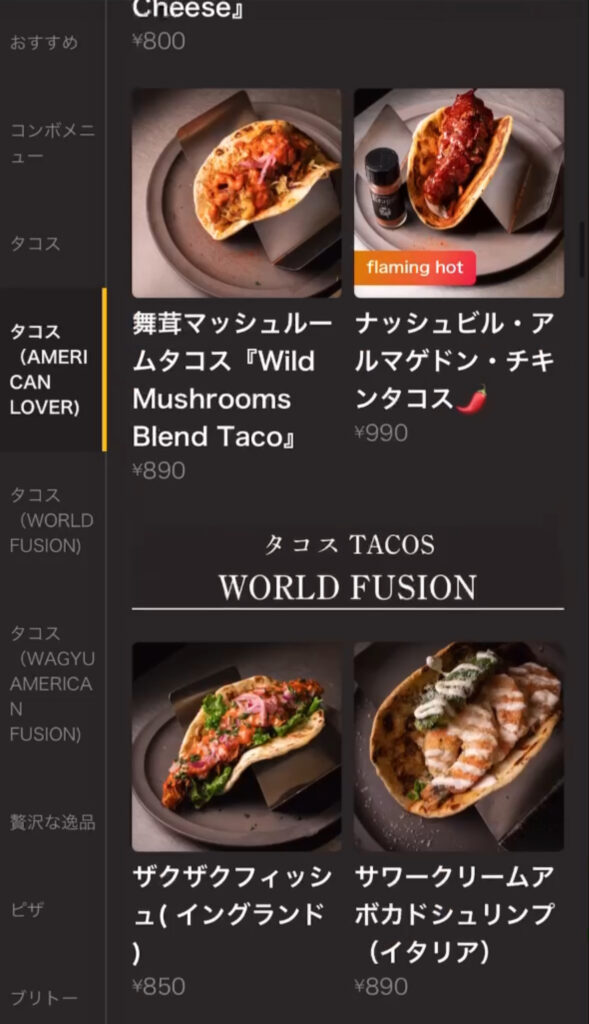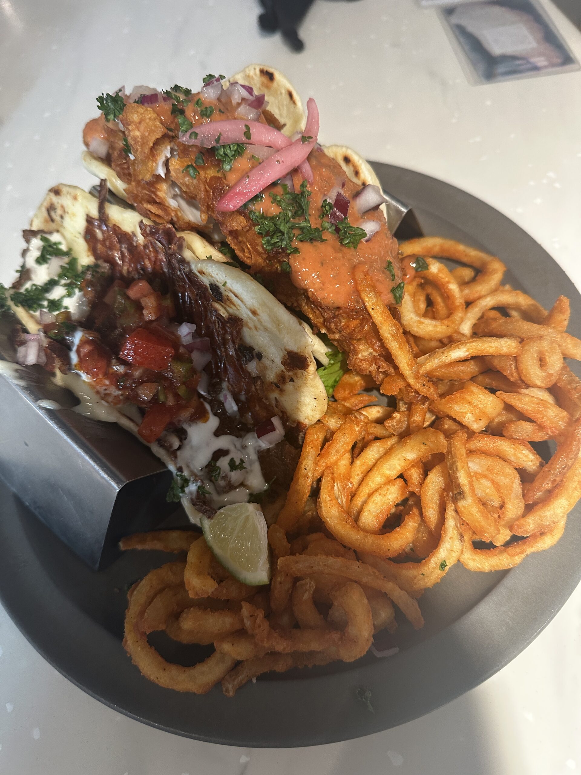 2ピースは炭火焼ステーキ&グリルドチーズタコスと、ザクザクフィッシュをチョイス。