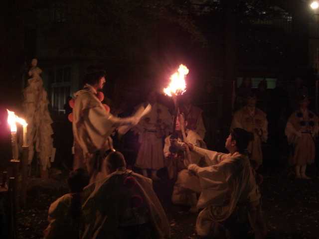 最初に「山伏問答」→夕方以降、火踊り・火渡り神事