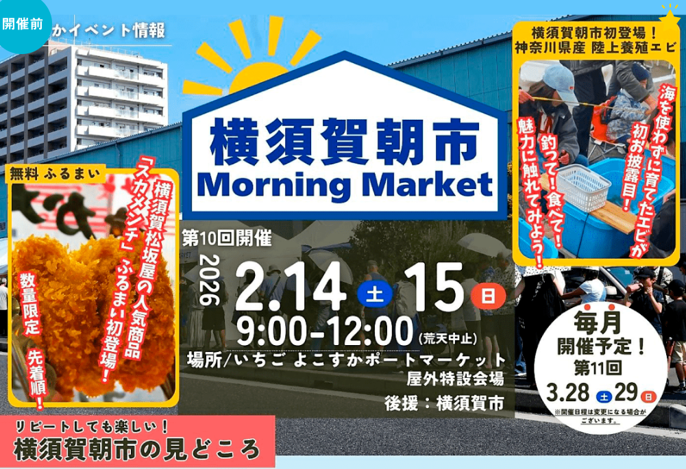 ちょっと早起きして「おいしい出会い」を楽しむ、横須賀ならではの朝市が2月も開催されます。