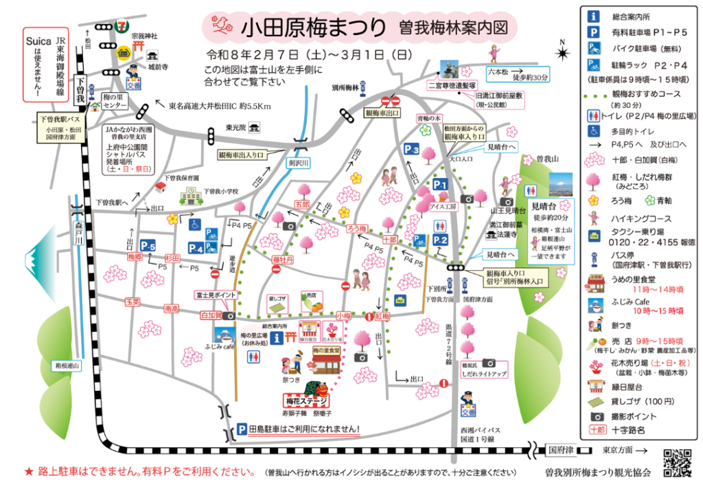 小田原駅、JR国府津駅、小田急線新松田駅から、バス(富士急モビリティバス)「中河原梅林」~「下別所」下車 すぐ