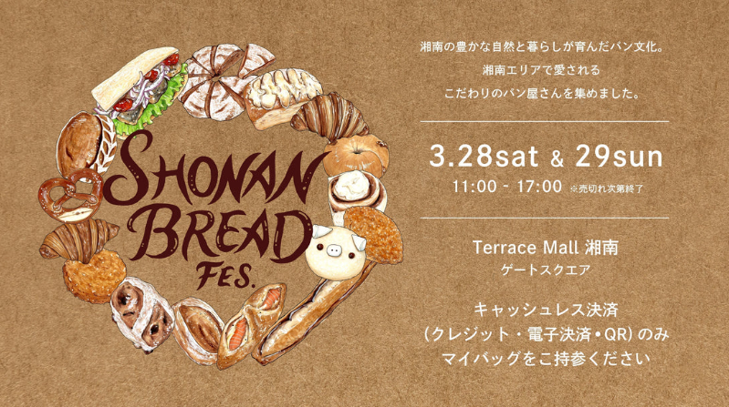 湘南エリアの人気ベーカリー約20店舗が集結するパンフェスと、地元プロダクトのマルシェが同時開催されます。