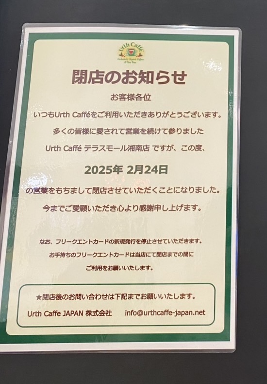 UrthCaffeテラスモール湘南店が2...